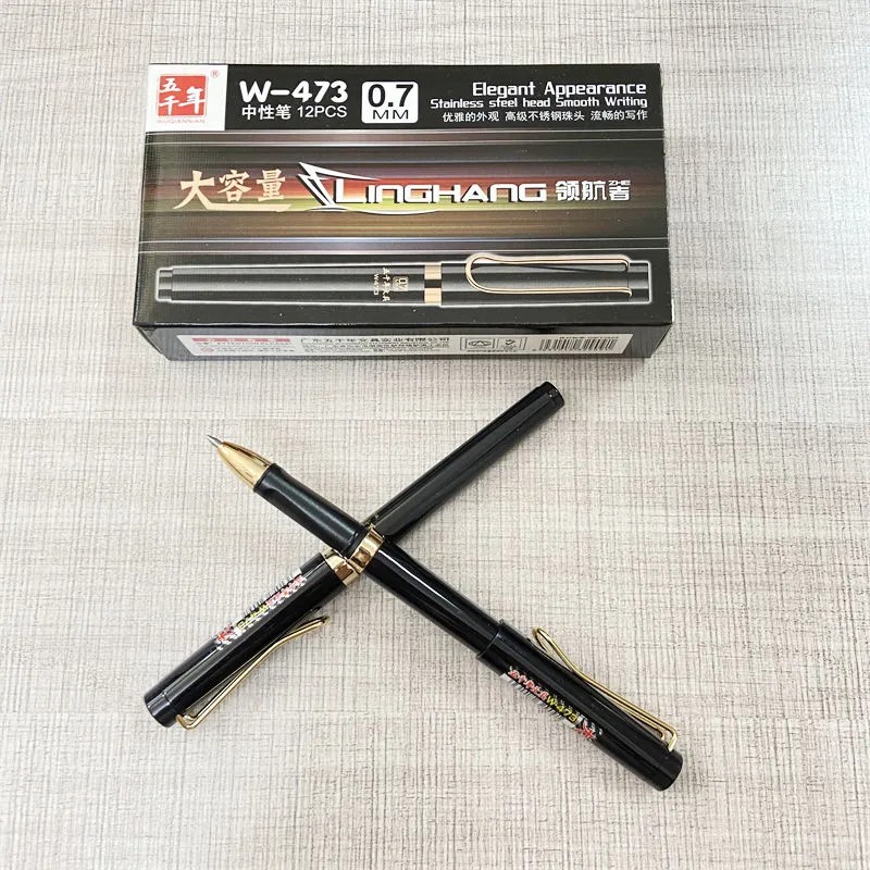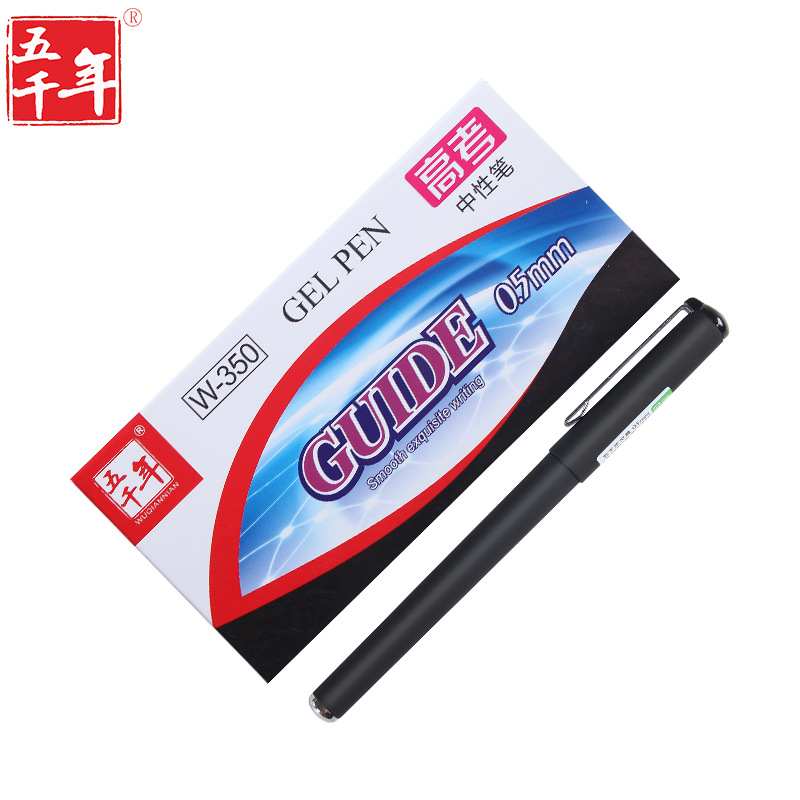 五千年W-376中性笔0.5MM签字笔顺滑黑色水笔办公用笔学生书