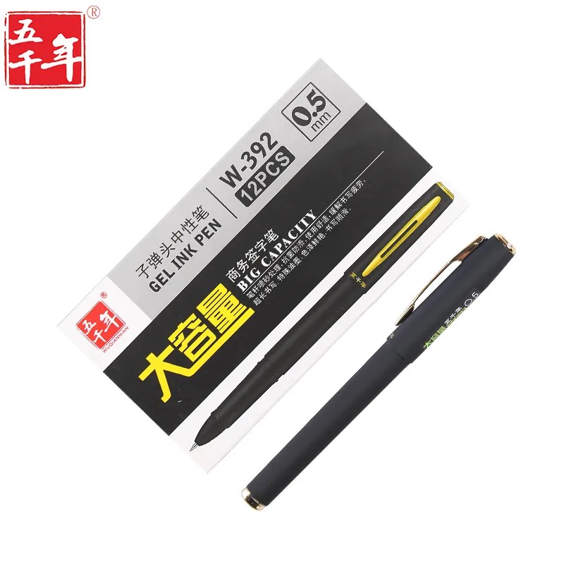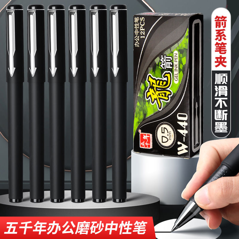 五千年0.5mm商务中性笔磨砂杆黑色子弹头学生书写笔中性笔W-4