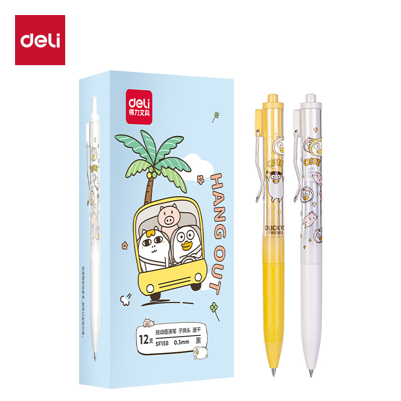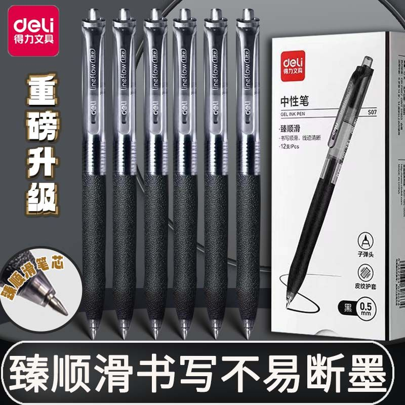 得力0.5按动直液式中性笔黑色子弹头学生高颜值水笔签字笔刷题笔