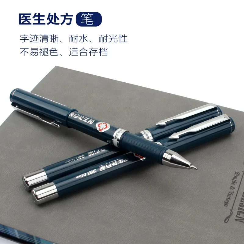 五千年医生处方笔0.5mm墨蓝色医生签字笔蓝黑色子弹头中性水笔3