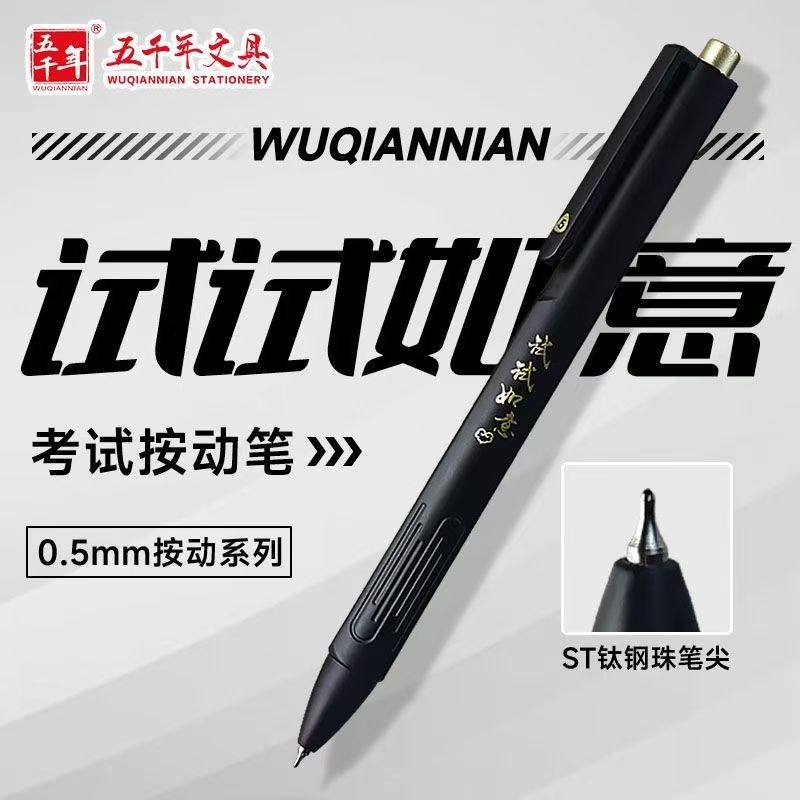 五千年0.5mm学生考试中性笔三角杆书写黑色按动水性笔刷题笔ST