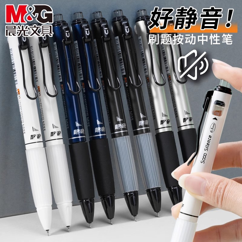 晨光静音按压中性笔ST头黑色刷题笔0.5mm好静音你好火星孔庙祈