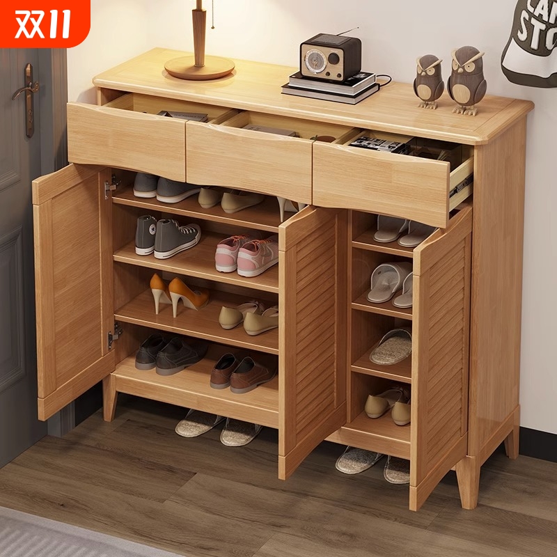 实木鞋柜家用门口入户新款简约大容量玄关柜一体靠墙鞋架跨境电商