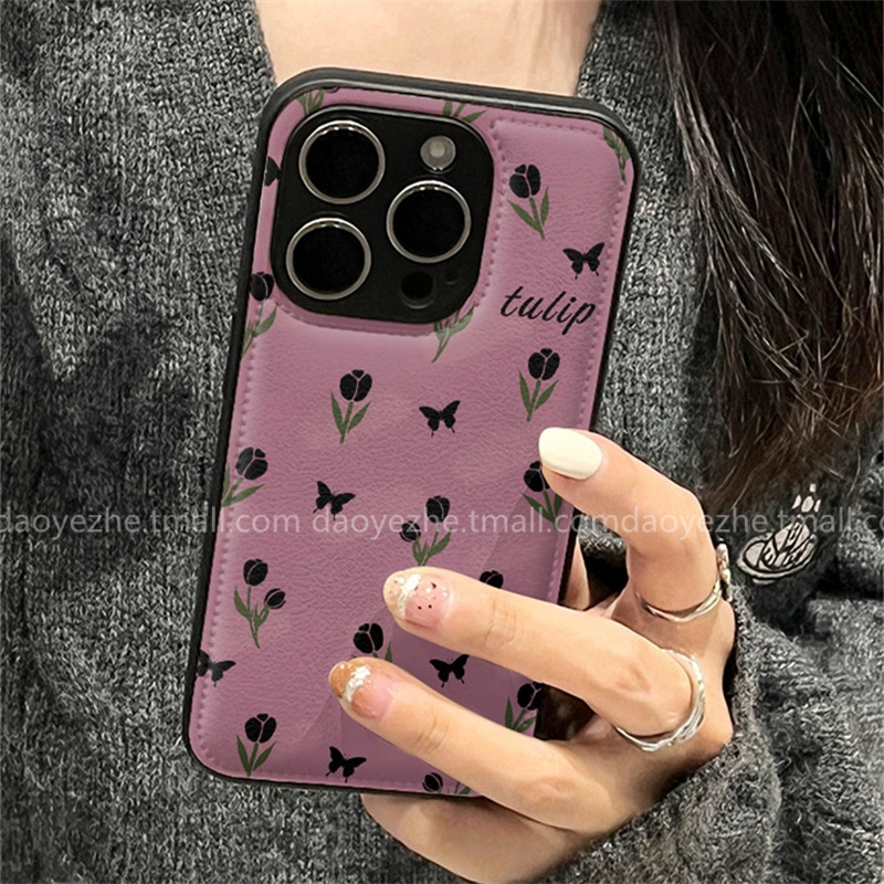 小众温柔少女紫色黑花朵oppoReno14手机壳FindX8S+