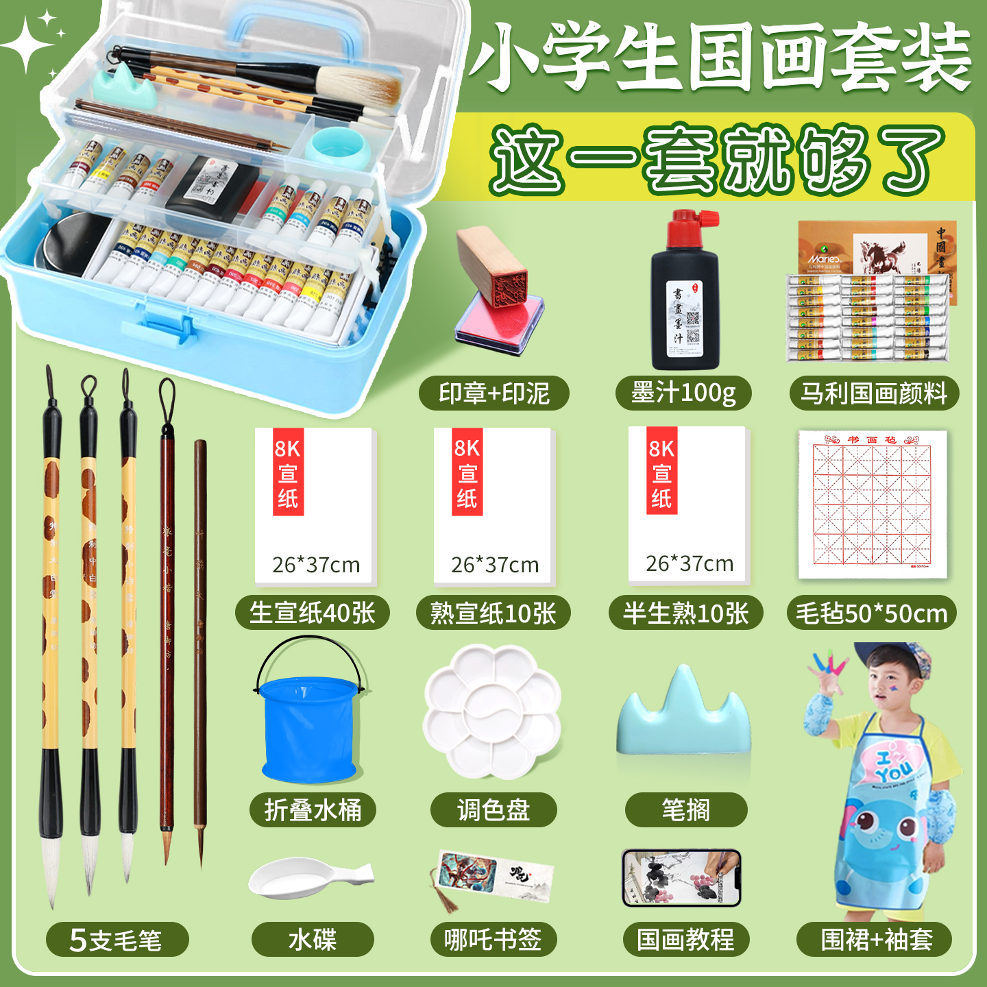 中国画颜料12色初学者毛笔小学生儿童入门材料工笔画24色水墨画工