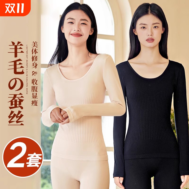 保暖内衣女内搭薄款发热紧身打底棉毛衫秋衣秋裤套装冬季玻尿酸