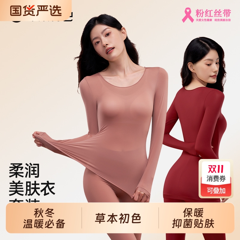 草本初色玻尿酸肌底衣女士抗静电保暖内衣薄款无痕秋衣秋裤套装女