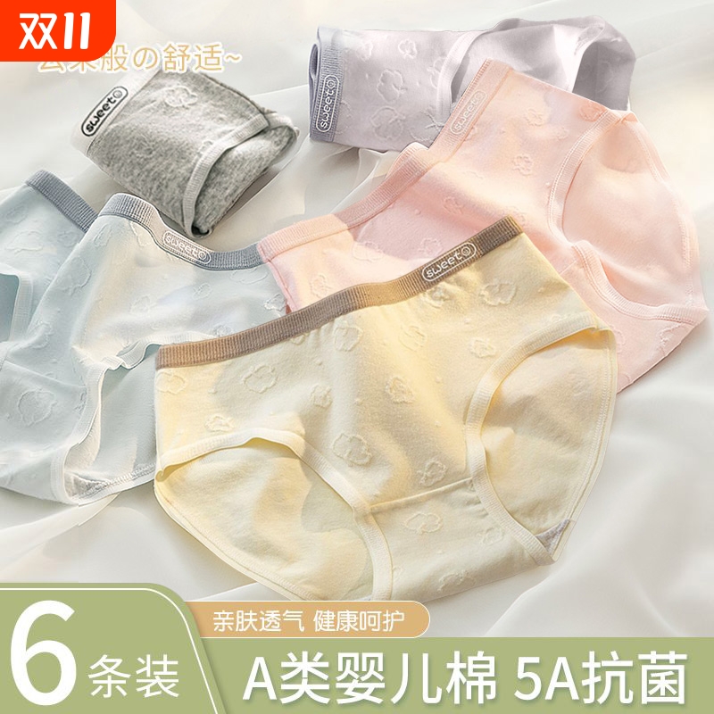 纯棉抗菌内裤女士全棉中腰无痕2024新款日系少女生可爱三角短裤头