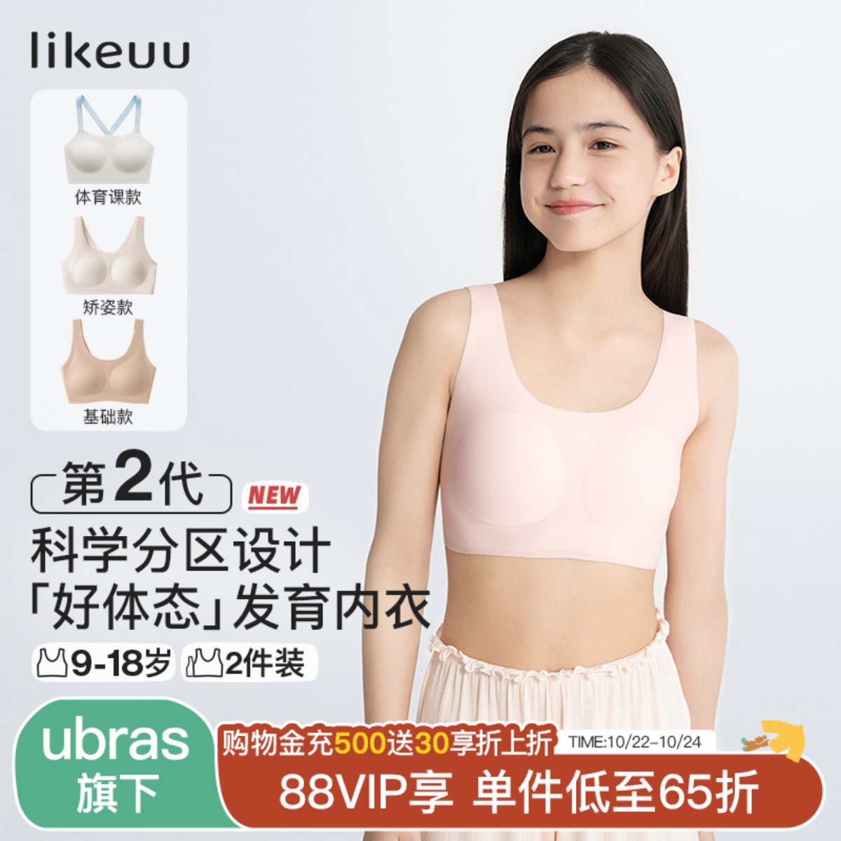 likeuu少女运动内衣a类初高中学生女大童撞色抹胸背心发育期文