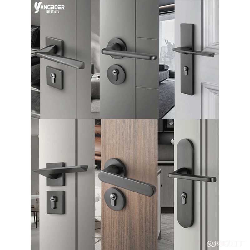 灰黑现代门锁室内卧室静音房门锁分体木门把手家用通用型58磁吸素
