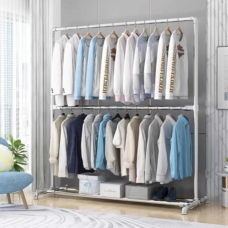 加厚镀锌管晾衣架落地立式室内挂衣阳台凉衣杆单杆两层挂衣架上下