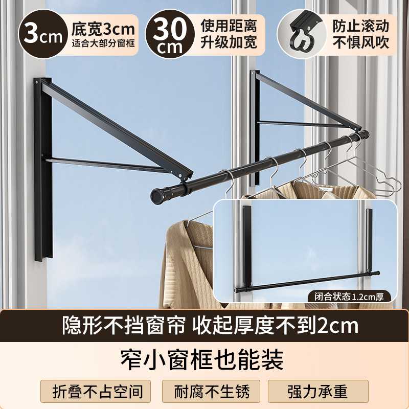 隐形晾衣架阳台窗边室内折叠小户型窗户晒被子晾衣杆飘窗晾衣神器