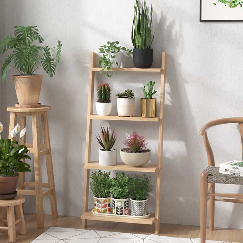 松木梯子花架子阳台多层梯形置物客厅落地斜靠墙室内阶梯展示书J&