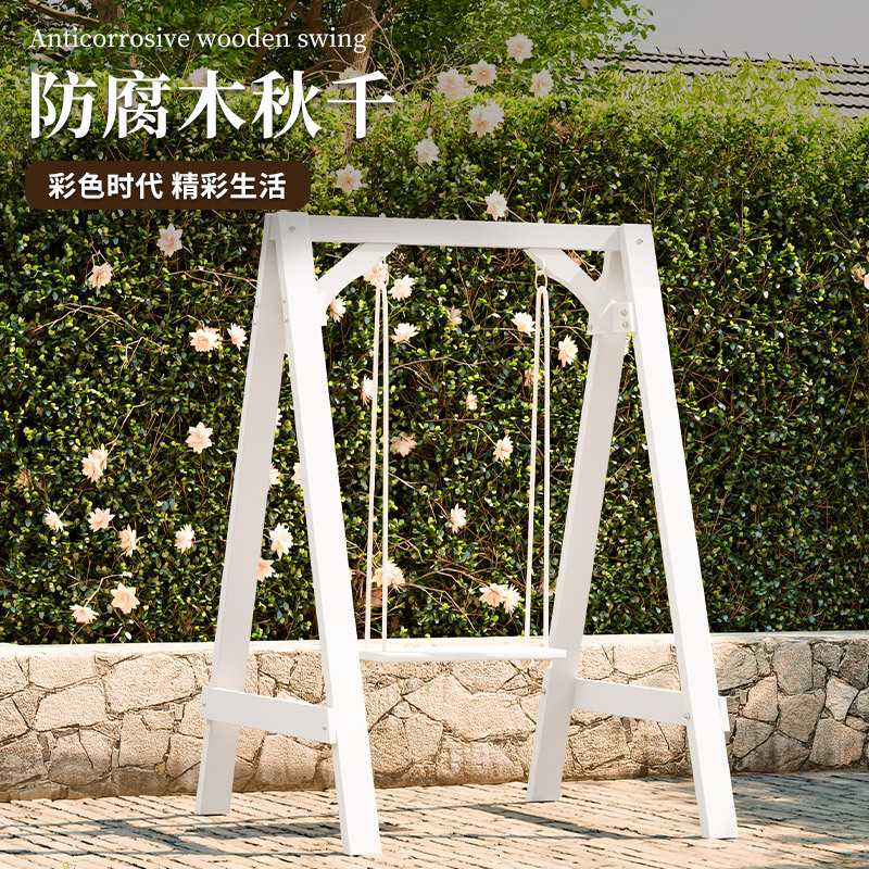 单人实木质秋千白色网红室内儿童阳台摇椅户外庭院木制荡秋千