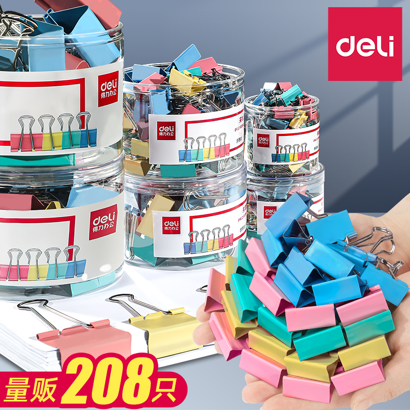 得力彩色长尾夹燕尾夹蝴蝶夹铁票夹夹子大号小号中号文件小清新凤尾夹