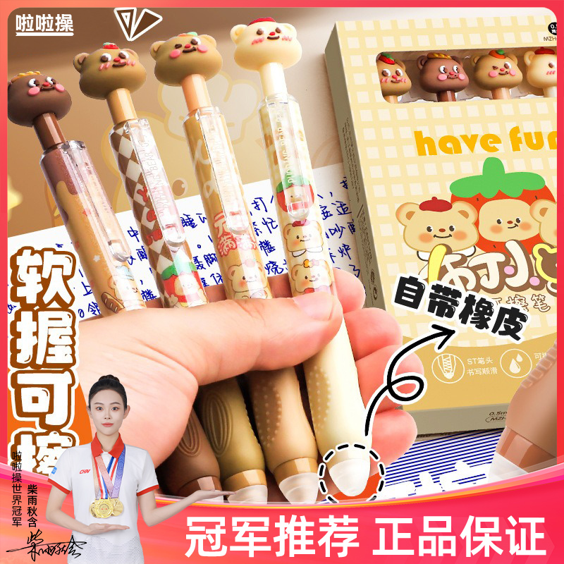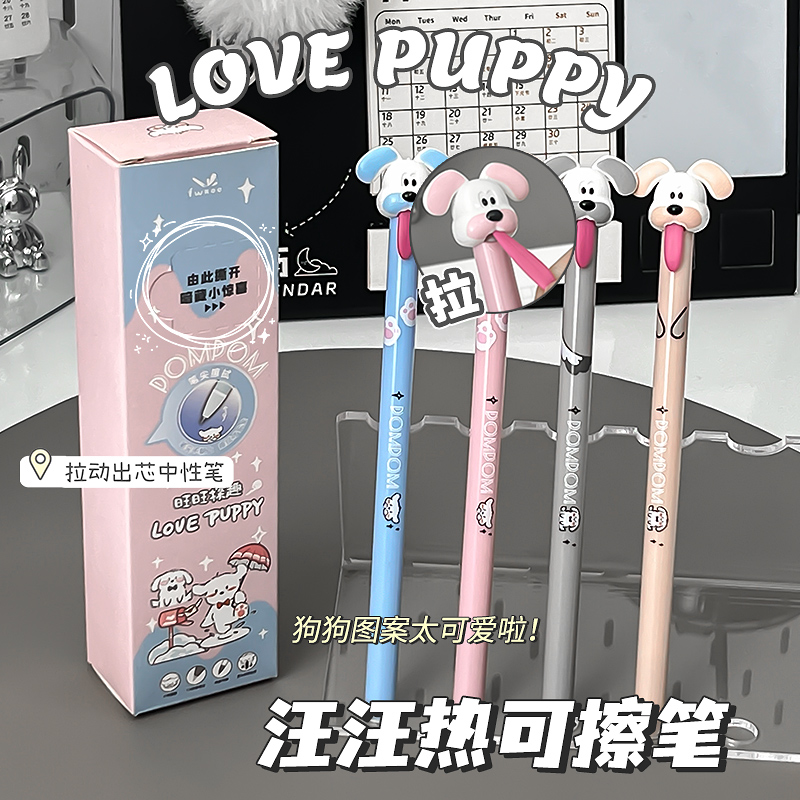 汪汪可擦笔小学生专用三年级舌头笔按动中性笔复写笔摩易擦圆珠笔晶蓝