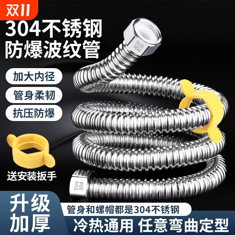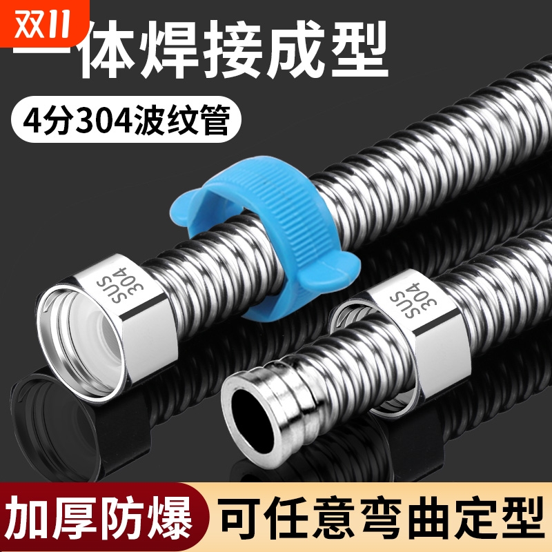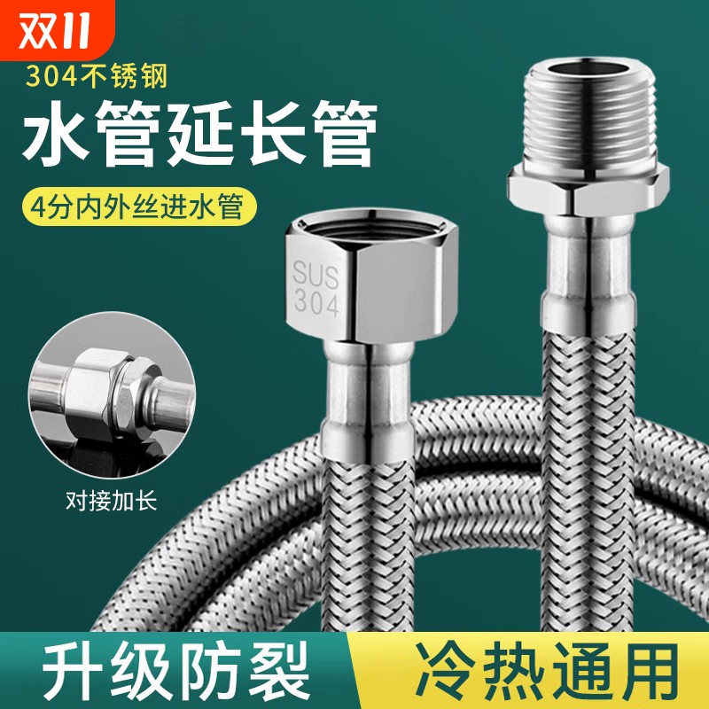 4分304不锈钢编织水管双头螺母热水器马桶水龙头防爆冷热进水软管