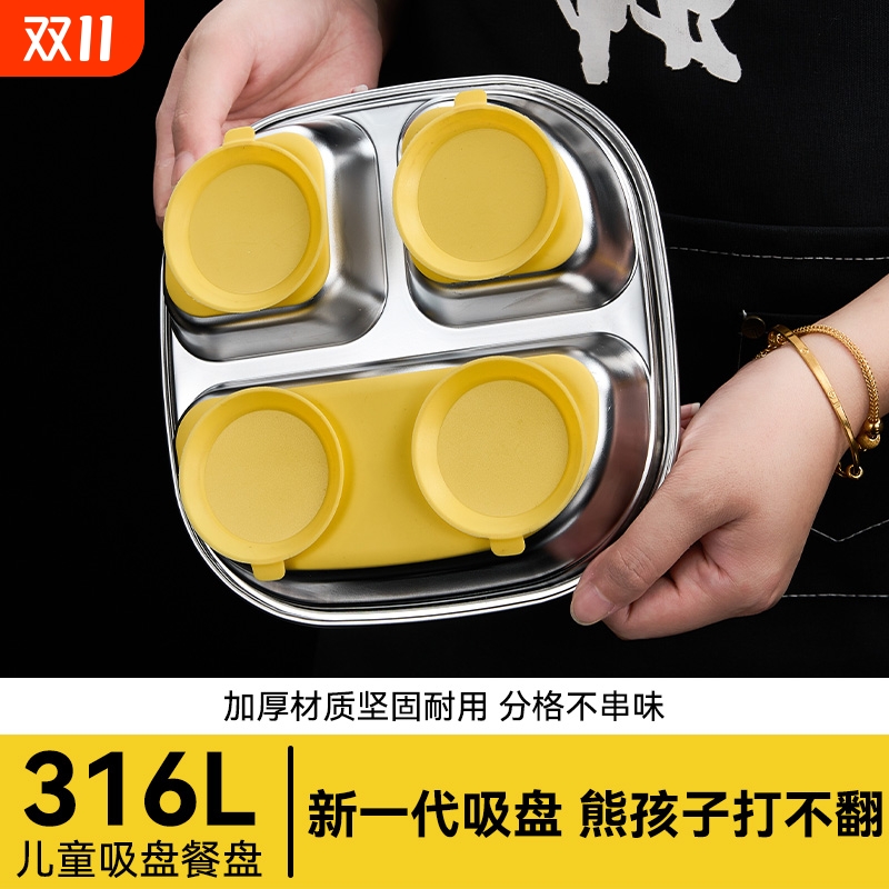 德国不锈钢餐盘儿童宝宝304食品级分格碗幼儿园男餐具三格吃饭