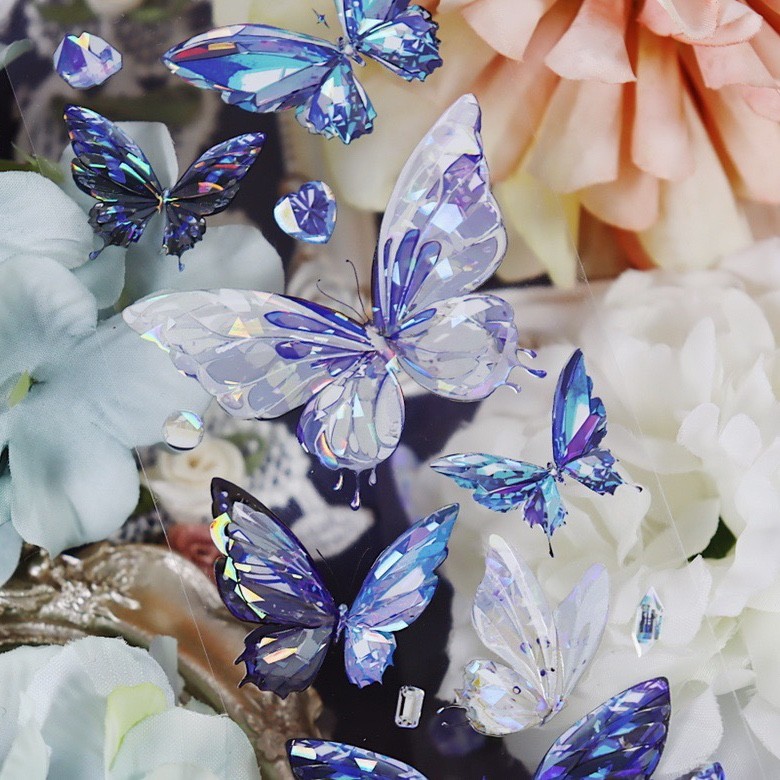 手帐分装a11星夜蝶palette蓝色系蝴蝶pet胶带账流麻贴纸