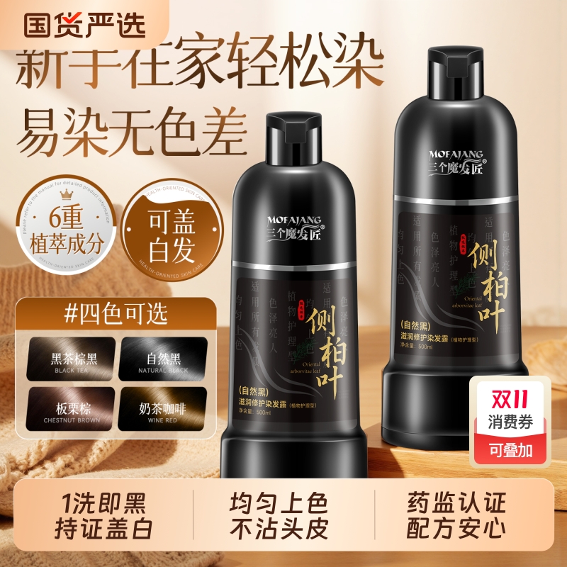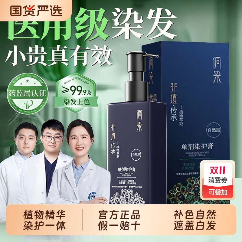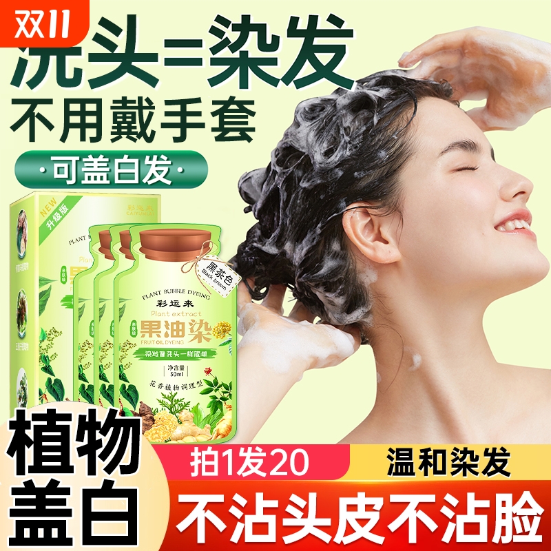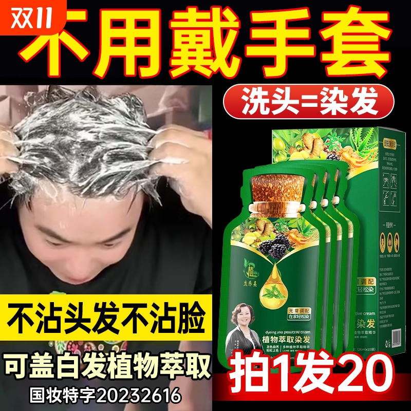染发膏一洗黑天然无刺激一支黑泡泡染发剂植物纯官方旗舰店正品牌