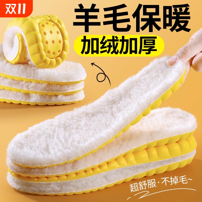 保暖鞋垫女冬加绒冬季羊毛软久站超软秋冬男吸汗防臭踩屎感减震