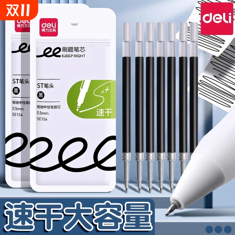 得力按动笔芯st头速干刷题笔芯