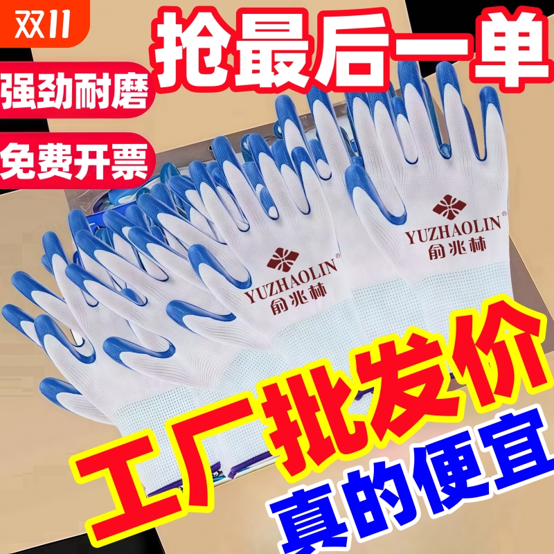 青岛耐磨耐用蓝白丁腈手套批发