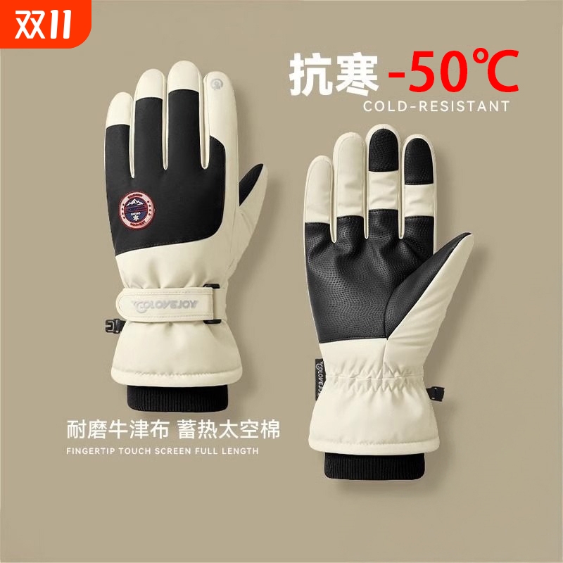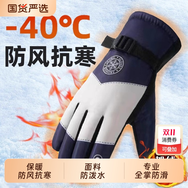 滑雪手套女士冬季可触屏防寒风加绒加厚保暖骑行电动车御寒手套男