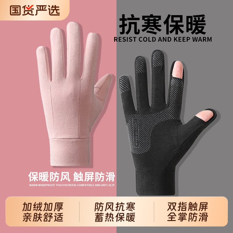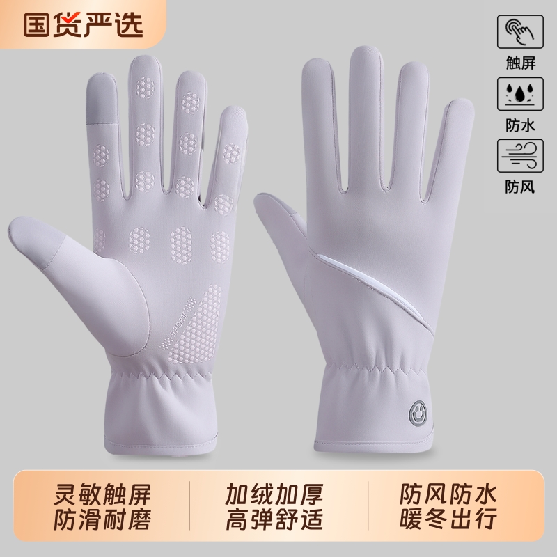 手套薄款女冬天春秋款德绒棉弹力骑车防风保暖加绒防寒触屏电动车