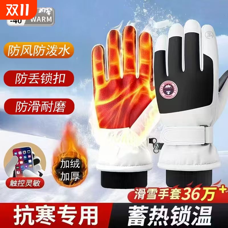加绒加厚保暖滑雪手套男女新款秋冬季防风防水防寒骑车可触屏骑行