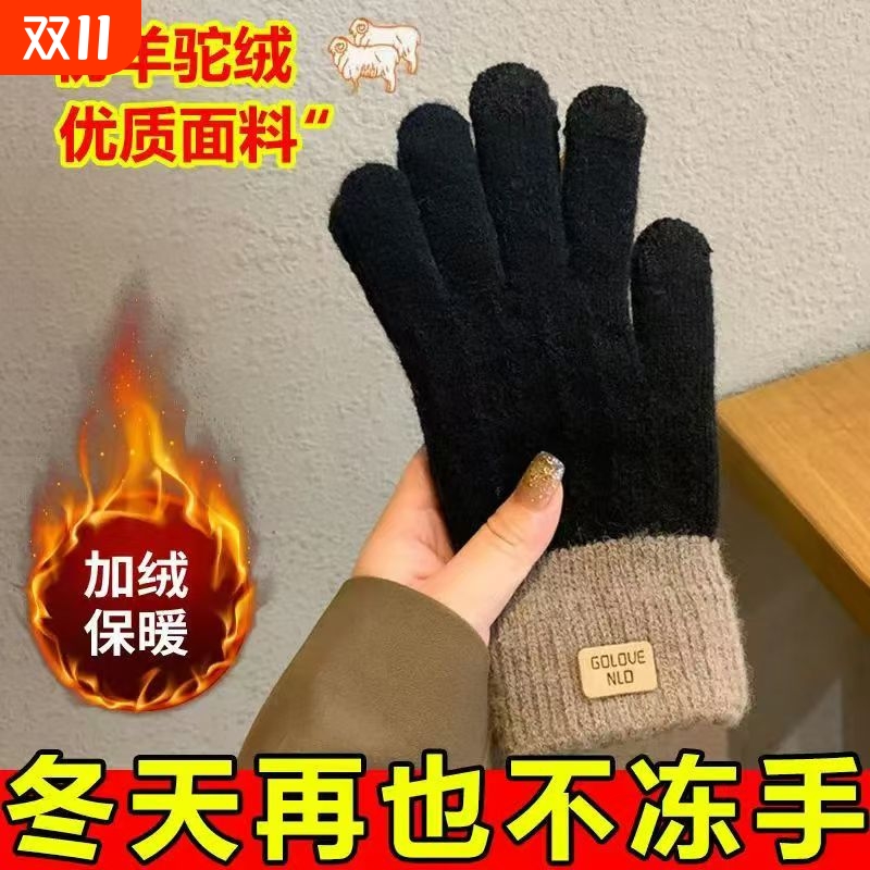 触屏手套男士冬天骑行开车加厚加绒毛线防寒女学生秋冬季保暖情侣