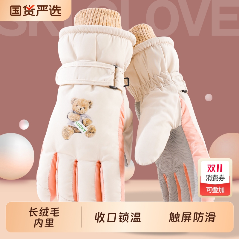 可爱骑行骑车手套女士冬季保暖防寒加绒加厚户外滑雪防风新款触屏