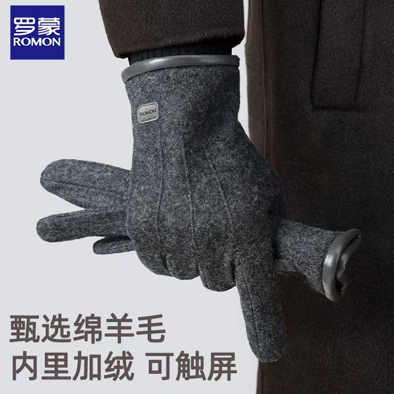 罗蒙羊毛手套男士冬季保暖加厚手套加绒骑行可触屏户外防寒手套ND