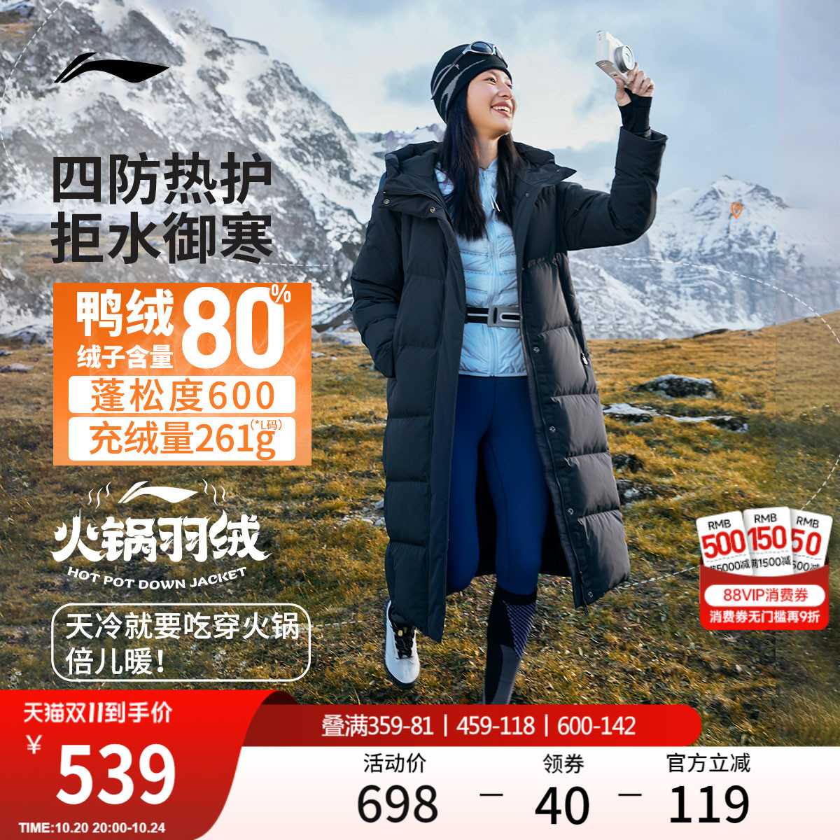 李宁火锅羽绒服女子长款棉服