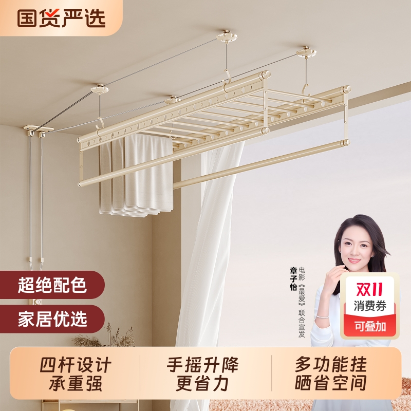 杜管家晾衣架手摇家用阳台升降室内双杆晒衣服被子多功能凉衣杆