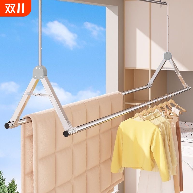 阳台升降落地晾衣架折叠家用室外伸缩凉衣杆户外挂衣服晒被子神器