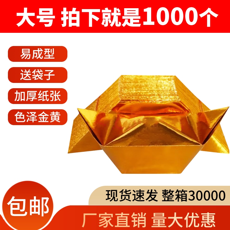 大号元宝纸半成品元宝手工折纸金银纸半成品元宝1000个1万个