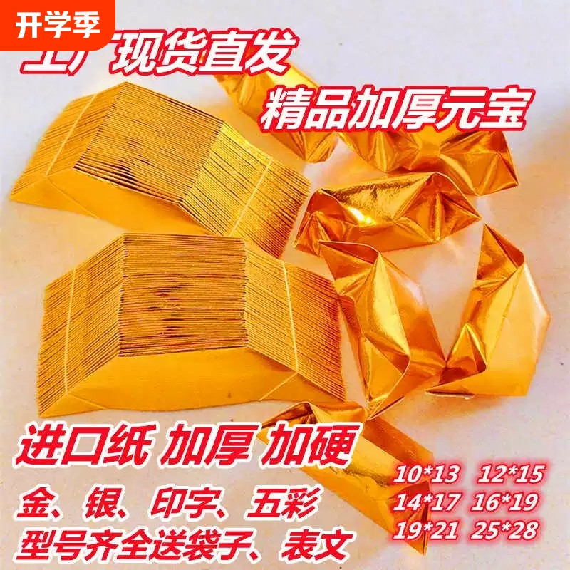 半成品元宝1000个切角金银锡箔纸加厚一等品包邮送袋手工折纸金黄