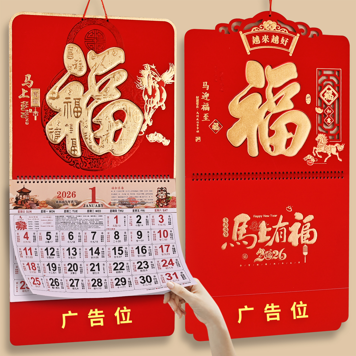 日历2026年新款手撕黄历挂墙式老人家用挂历大号彩色养生知识皇历