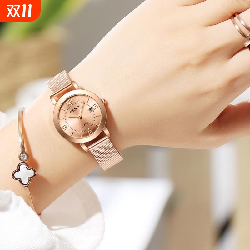 抖音爆款全自动女士手表夜光防水单日历女学生钢带腕表石英普通
