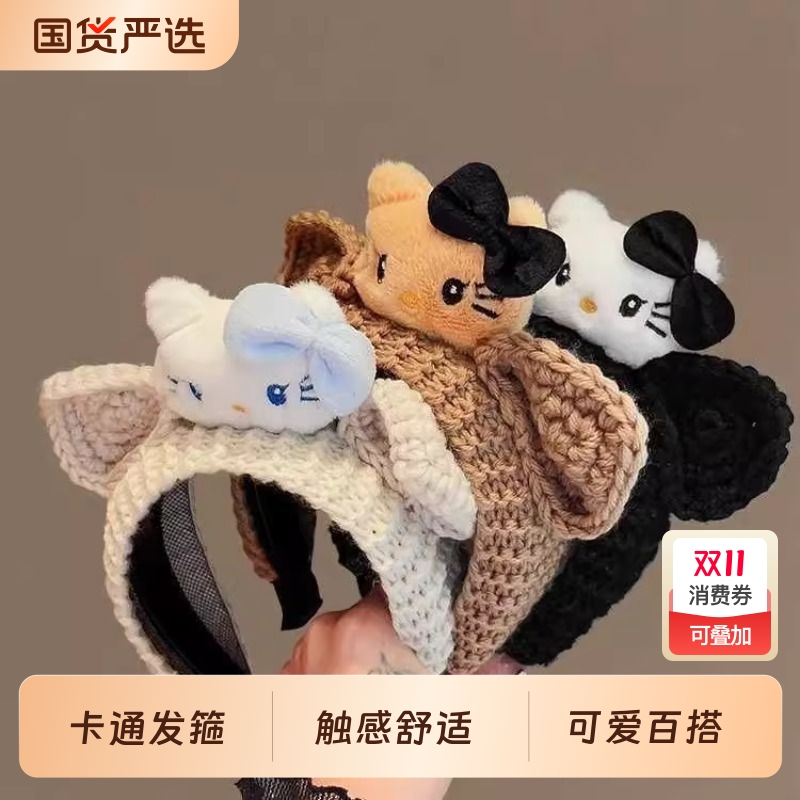 原创设计可爱小猫耳朵发箍女甜美发卡洗脸毛线手工发饰不勒头箍女