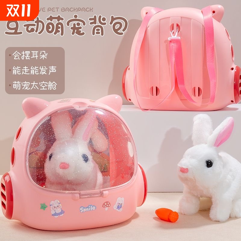儿童宠物背包兔子毛绒玩具女孩电动仿真动物玩偶会叫会动萌宠礼物