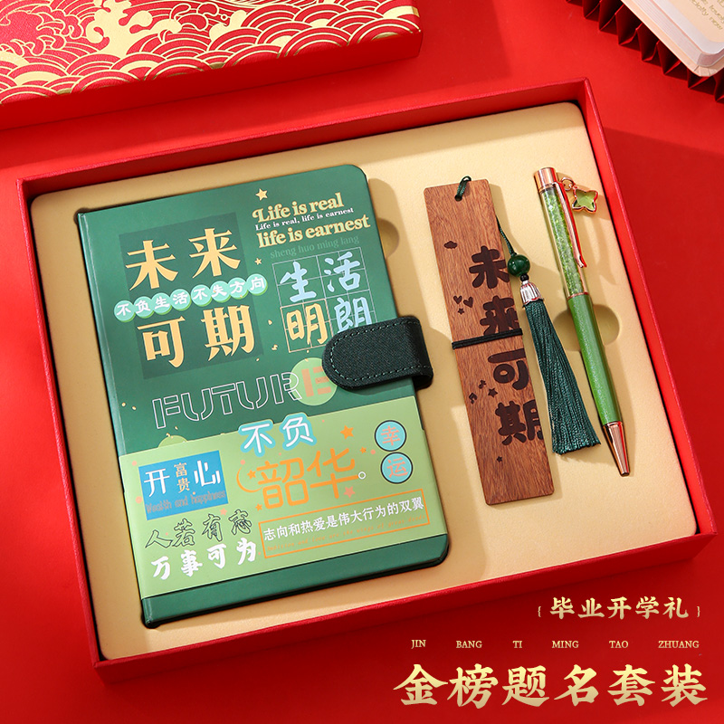 未来可期加厚笔记本高颜值便携式及时本子签字笔书签前程似锦文创套装