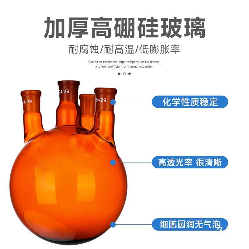 棕色三口烧瓶单口四口圆底玻璃烧瓶斜直颈标准口蒸馏反应瓶玻璃仪