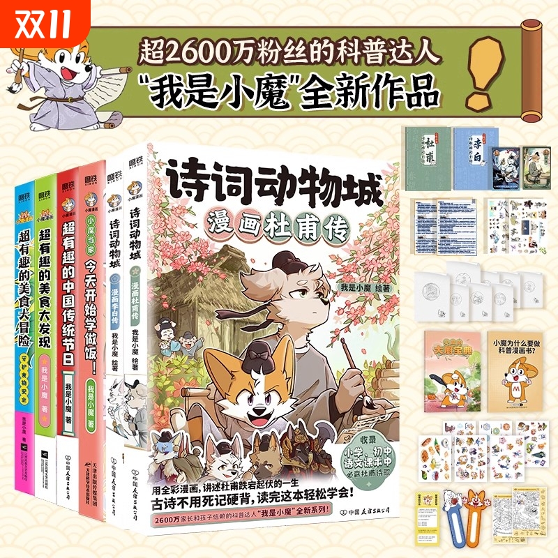 我是小魔科普漫画全6册 诗词动物城漫画李白传杜甫传小魔当家今天开