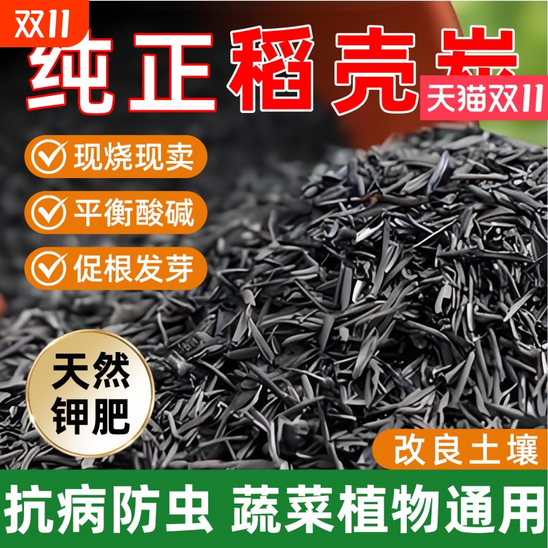 稻壳炭园艺腐熟谷壳碳颗粒正宗纯草木灰肥料钾肥发酵菜花用营养土