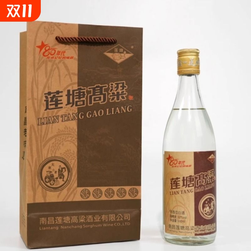 莲塘高粱80年代复古版52度500ml特香型纯粮食固态发酵白酒酒