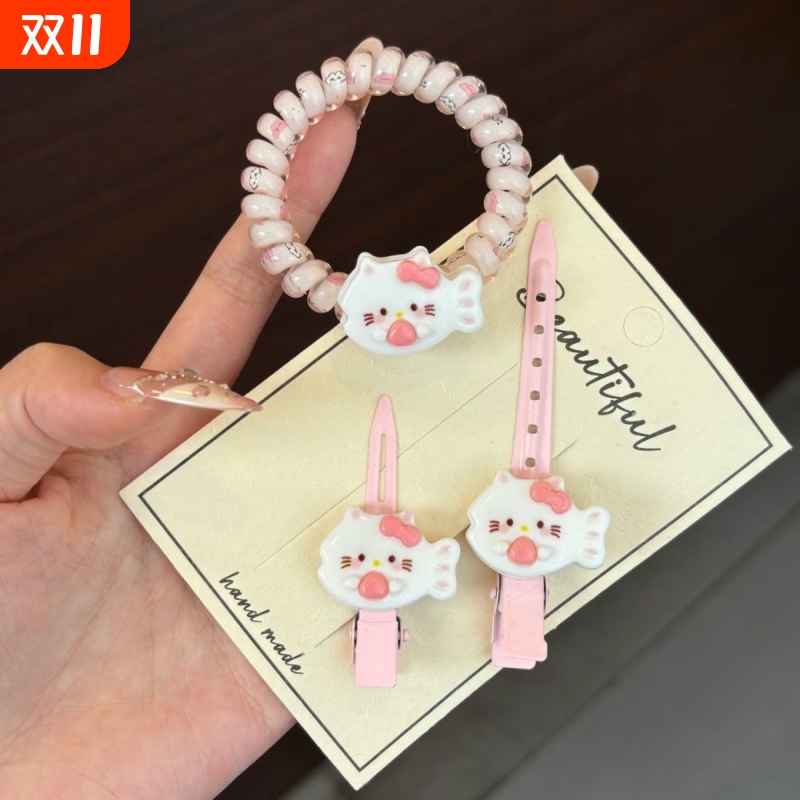粉色系猫小鱼发夹发圈组合甜美可爱少女心碎发夹高弹力发绳发饰