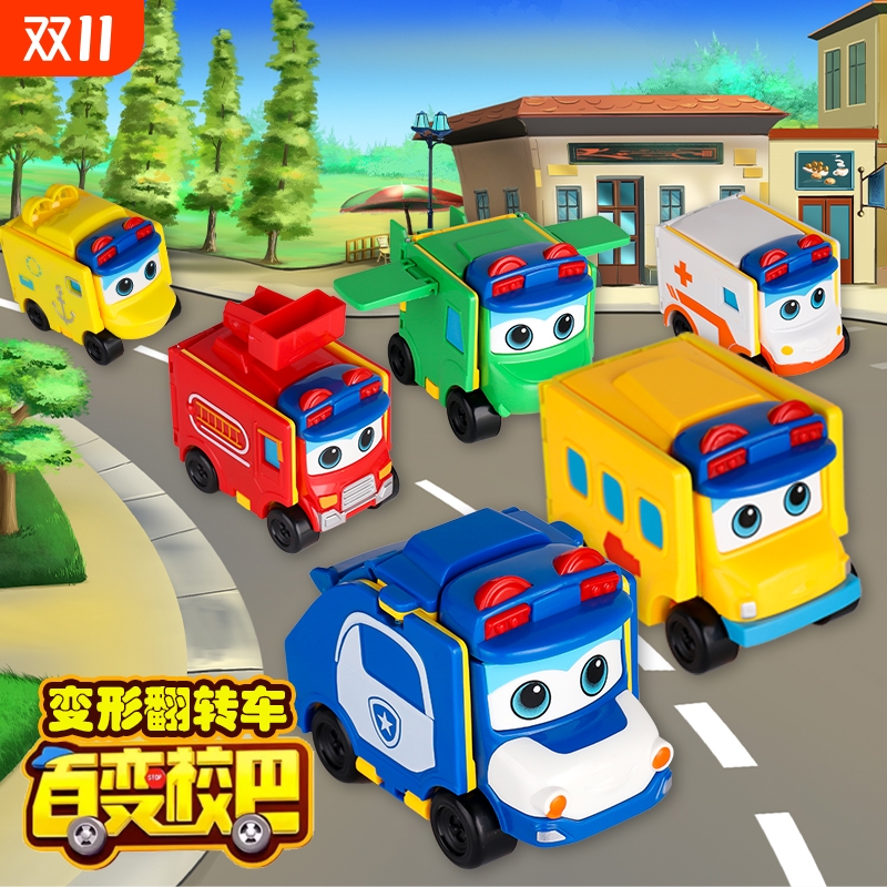 百变校巴车歌德反转玩具车变形儿童汽车益智玩具男孩套装警校车
