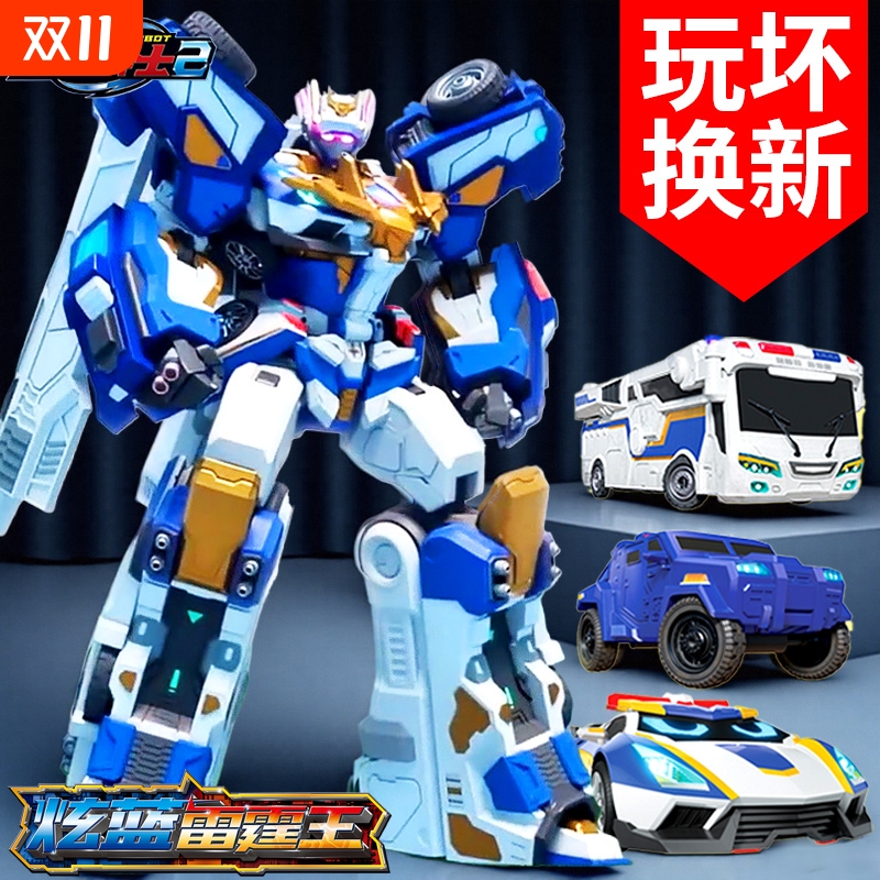 炫蓝雷霆王炫卡斗士第2季三合体变形机器人玩具金刚男孩儿童礼物